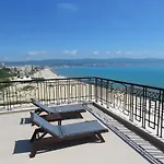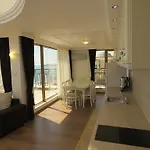 Golden Rainbow Beach Hotel presents alluring rooms designed with hardwood floors, each boasting a balcony for guests to enjoy the fresh sea breeze. The hotel's apartments feature not only two bedrooms but also come equipped with a flat-screen TV with cable channels, a kitchenette complete with a dishwasher and fridge, a washing machine, and two bathrooms with a shower, ensuring a comfortable and self-sufficient stay.